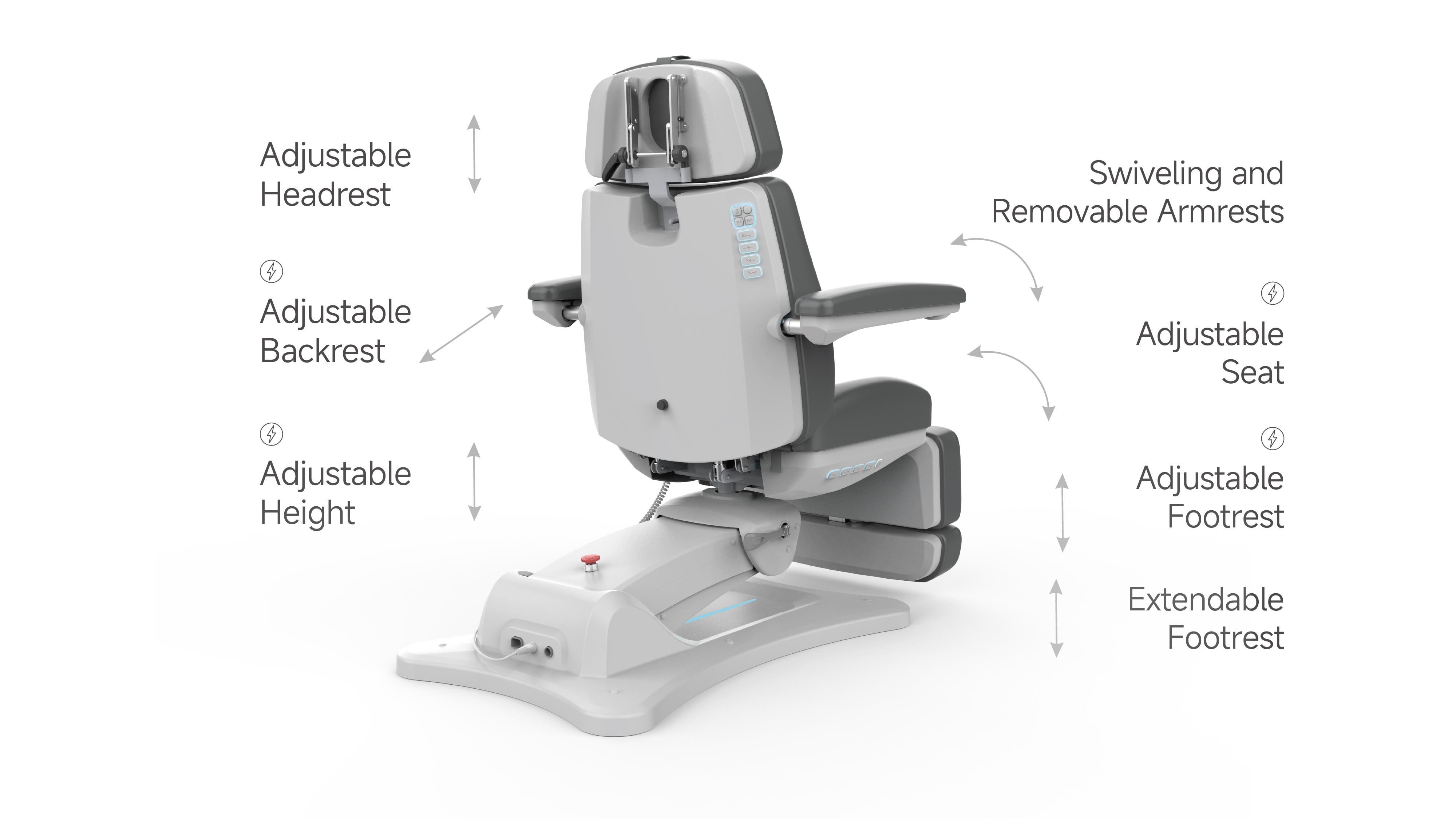 It features 2 MEMORY FUNCTIONS: with one touch of a button, the chair responds to set memory position.