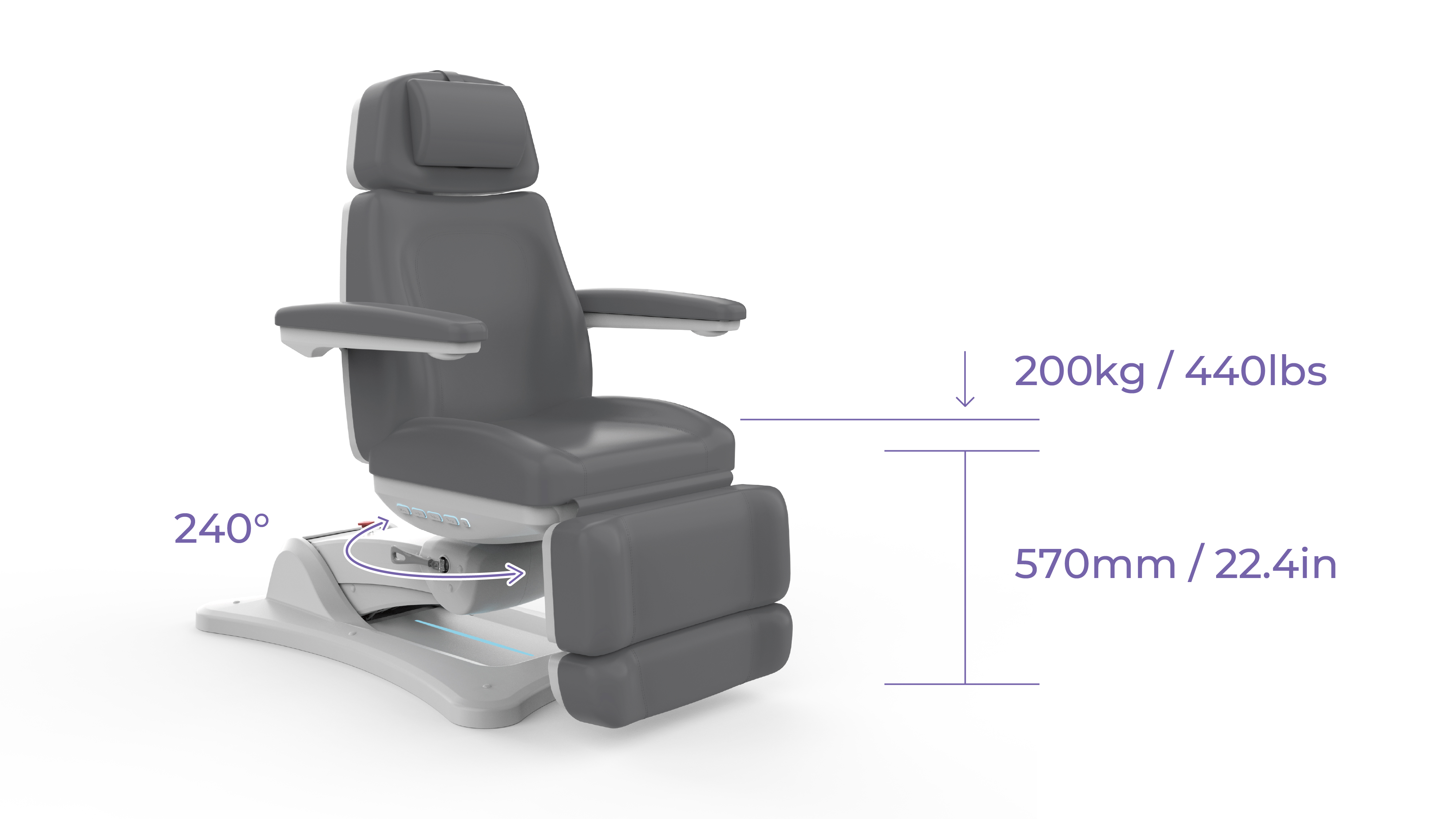 Min Height: 570mm / 22.4in