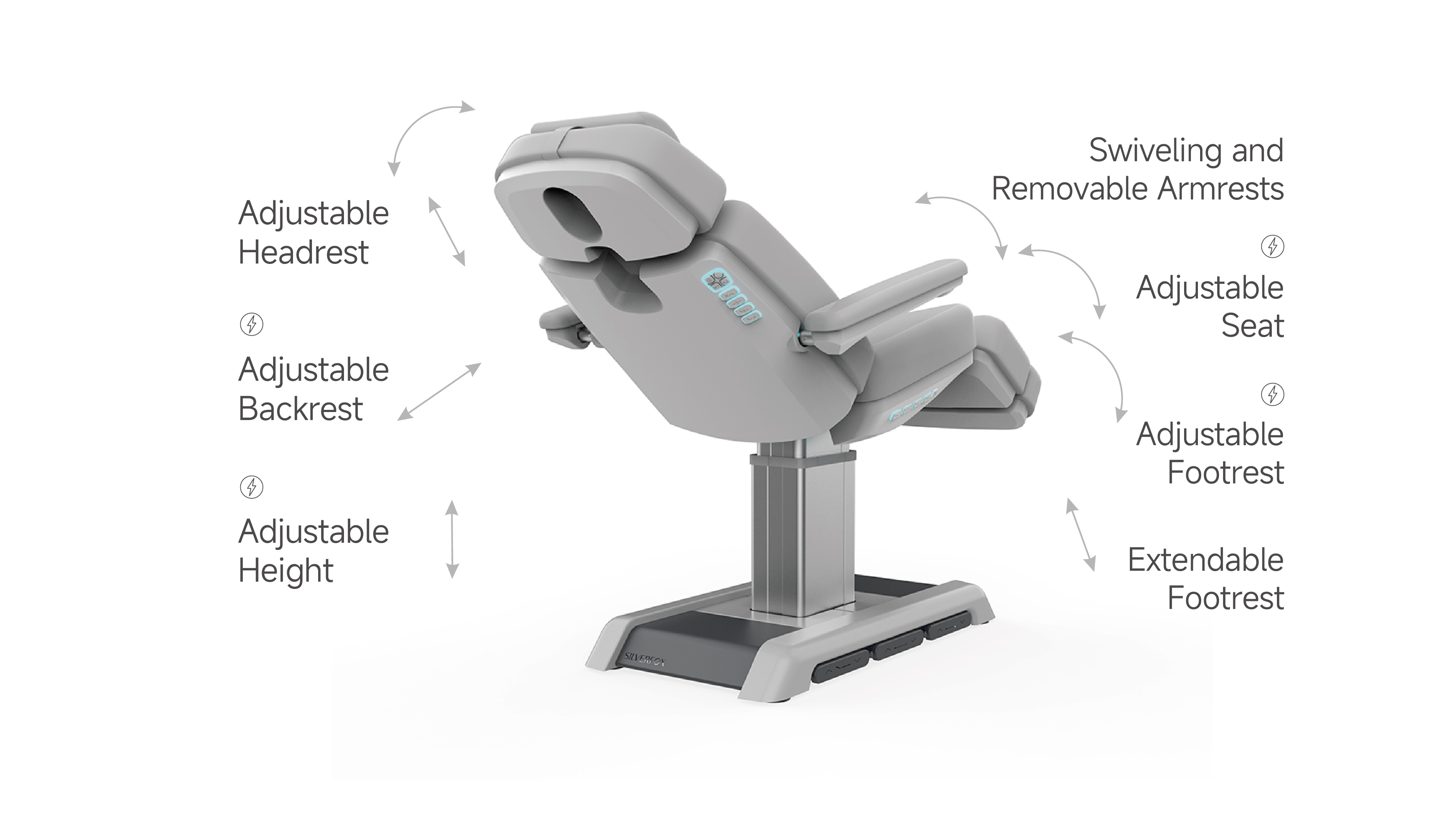 It features 2 MEMORY FUNCTIONS: with one touch of a button, the chair responds to set memory position.