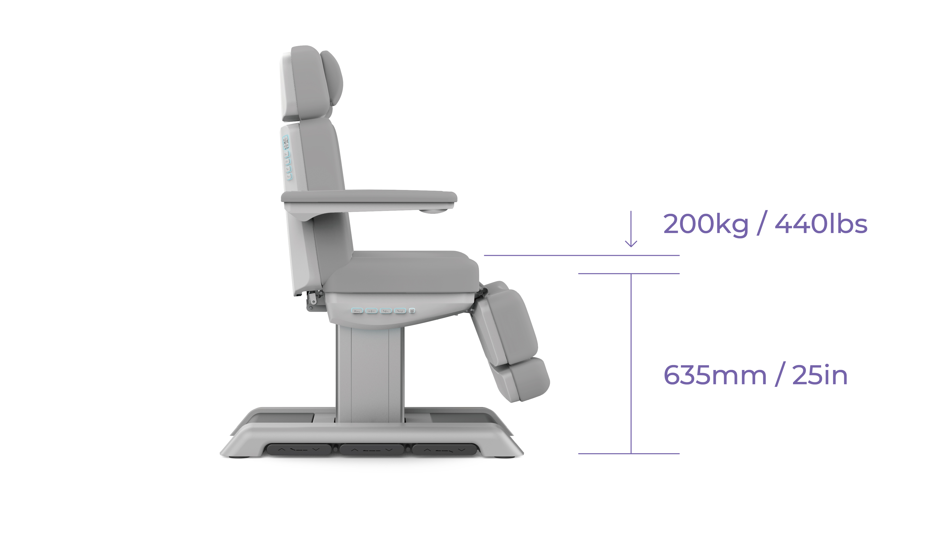 The chair is heavy duty and medical grade. It works well in all kinds of environments from spas to doctor’s offices, prefers a comfortable seating space and 200kg weight capacity. This series is in high demand from many medical places.
