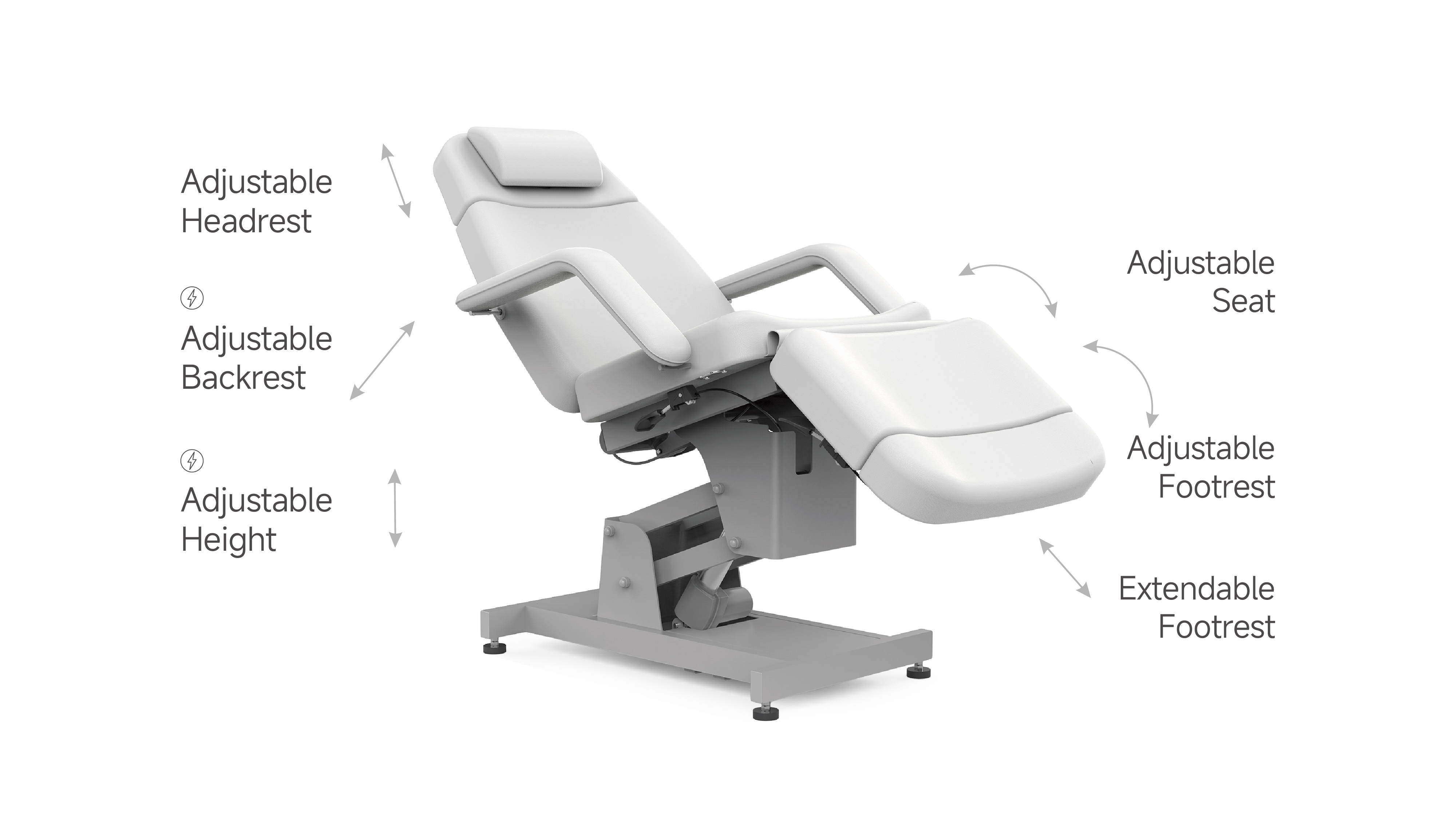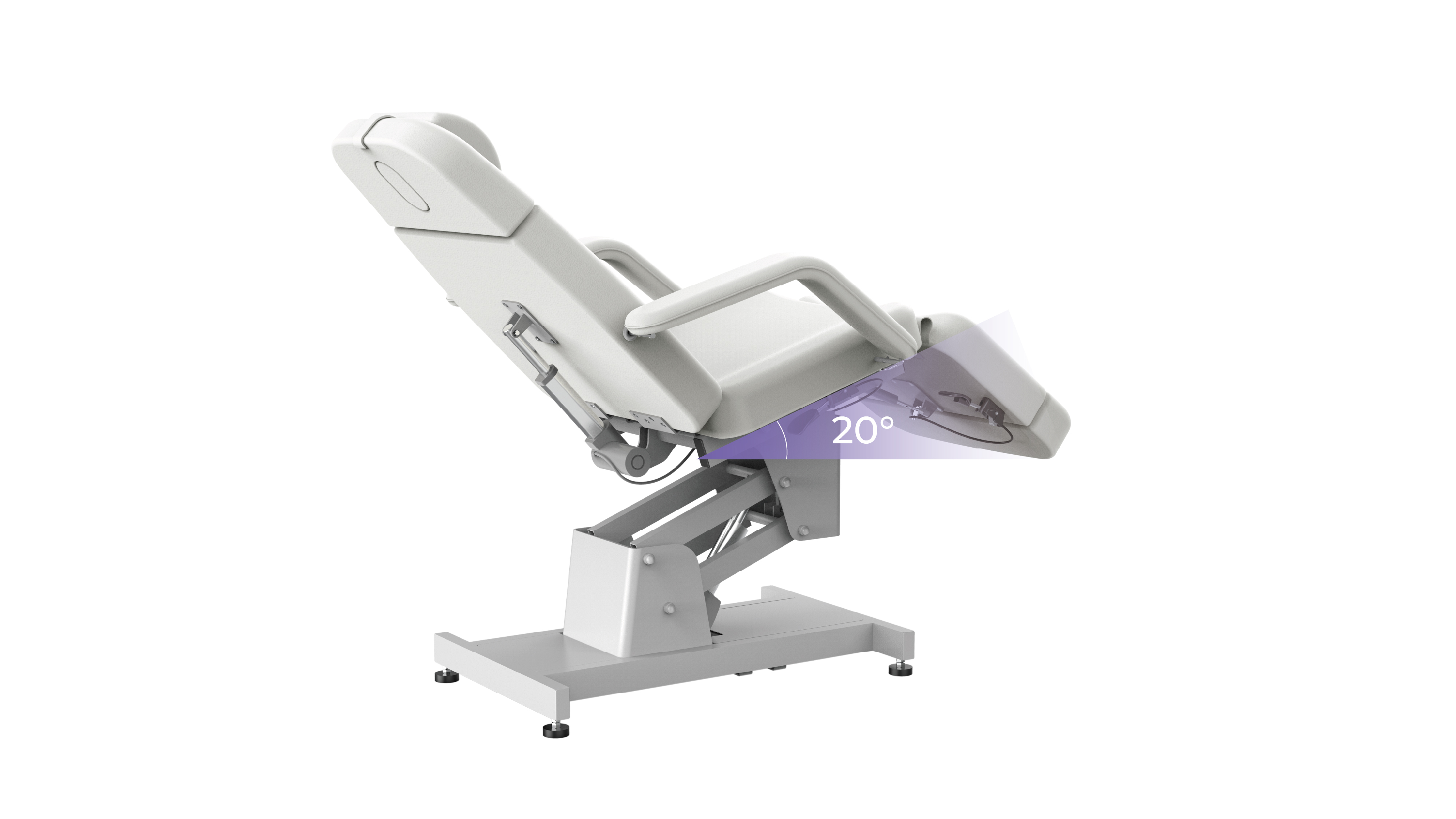 Electrically controlled chair to adjust separately height and backrest. Manual adjustment of angle of the seat inclination and footrest. Suitable for basic model selection.